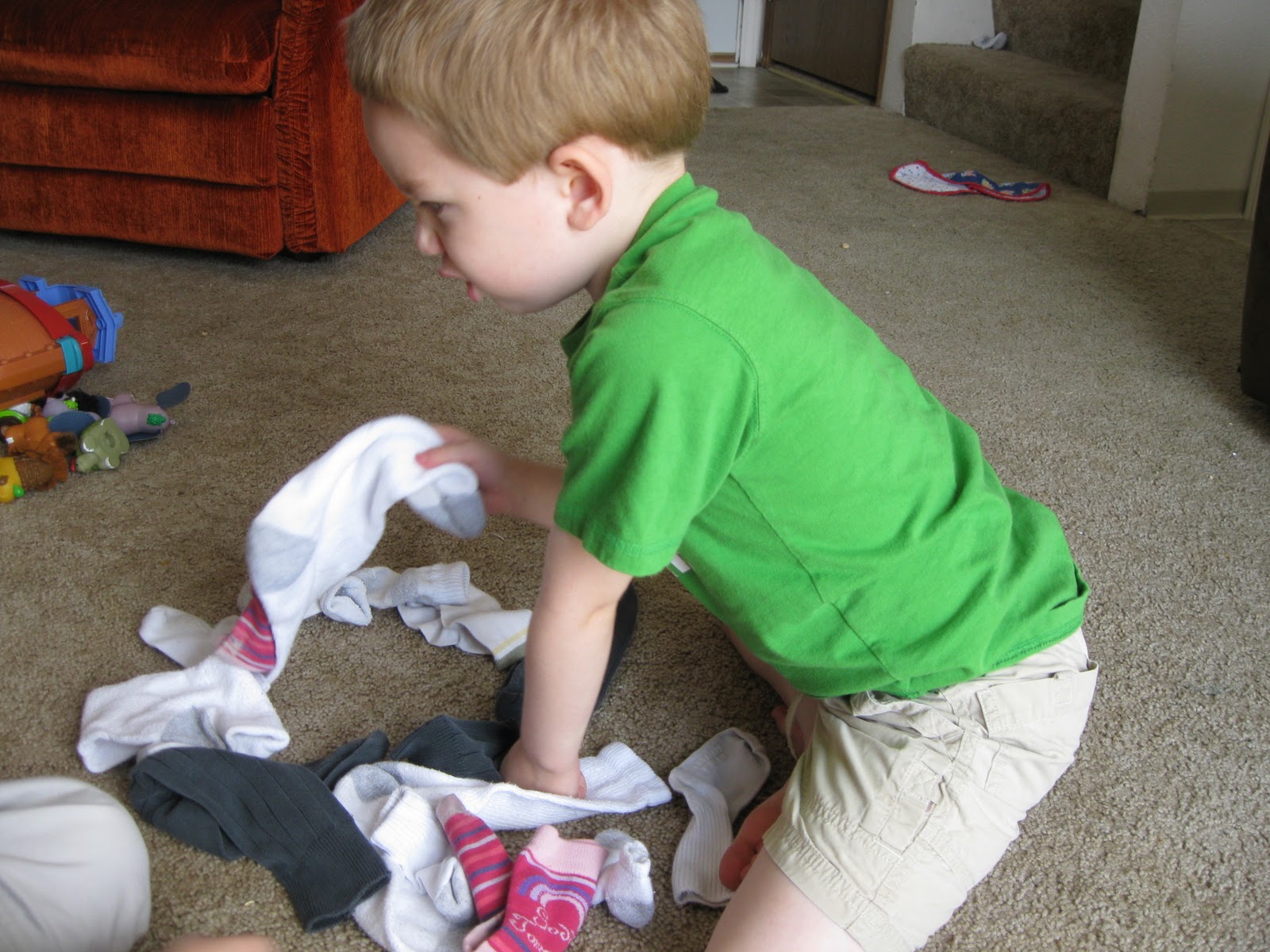 I like the pairing up of clean socks. Laundry help+learning all in one!